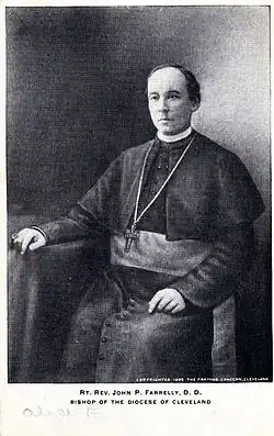 John Patrick Farrelly (March 15, 1856 – February 12, 1921) was an American prelate of the Roman Catholic Church. He served as bishop of the Diocese of Cleveland in Ohio from 1909 until his death in 1921.