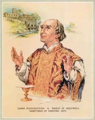 John Plessington (c. 1637 – 19 July 1679), also known as John Plesington, William Scarisbrick and William Pleasington, was an English Catholic priest who was executed by the English Crown for violating the ban on the presence of Catholic priests in the kingdom. He is now venerated as a saint, honored as one of the Catholic Forty Martyrs of England and Wales.[1]
