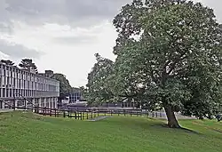 The large site has green open spaces between the individual teaching facilities.[5] The centre of the site is focussed around the lake, one of the original fishing ponds that were in the grounds of the Etwall Hall.