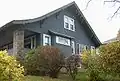 The 1+1⁄2-story timber-framed house was built in 1908 as a summer house by John R. Nelson, who was one of the developers of the Squantum farms. It is one of the area's best-preserved Craftsman/Bungalow homes. It has a side gable roof with broad eaves showing exposed rafter ends, which also extends over the front porch, where it is supported by stone piers.[2]