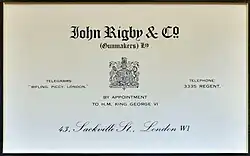 John Rigby & Co. held royal appointment to: