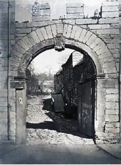Friary Gate (alias Sparke's Gate), Exeter Street, Plymouth. Photograph c.1890 showing "Sparke's Gate", an early 18th century rebuild of the dilapidated 13th century entrance to the Whitefriars Abbey, which had been acquired as their residence by the Sparke family after the dissolution of the monasteries