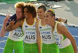 Steffensen (second from the left) after winning the bronze medal at the 2009 World Championships 4 x 400 m | |