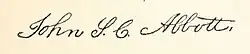 Abbott died at Fair Haven, Connecticut on 17 June 1877.[1] In 1910, a series of twenty short biographies of historical characters by J. S. C. and Jacob Abbott, was published. His brother, Gorham Dummer Abbott, was a pioneer in women’s education in the United States, as well as an author. Abbott's grandson, Willis Abbott, was a journalist and author and an editor of The Christian Science Monitor.[5]