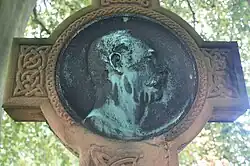 He is buried in Dalry Cemetery in the south-west of Edinburgh with his wife, Janet Scott Brunton (1860-1919). The grave lies against the north wall, west of the Dalry Road entrance.