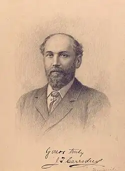 Carrodus was born on 20 January 1836, at Keighley, in the West Riding of Yorkshire. He took violin lessons from his father Thomas Carrodus, who was a barber and music-seller.[1] He made his first appearance as a violinist at the age of nine, and before the London public four years later.[2] He had the advantage of studying between the ages of twelve and eighteen at Stuttgart, with Bernhard Molique.[3][2] He also "became a 'follower of Spohr', who expressed his admiration for the Englishman's playing."[4]