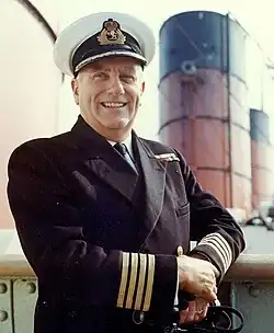 Captain John Treasure Jones RD, (15 August 1905 – 12 May 1993) was a British naval officer who became a well-known media figure in the mid-1960s following his appointment as the last master of the Cunard liner, RMS Queen Mary.[1] He has been described as one of the 20th century's most distinguished mariners, in war and in peacetime.[2] His forebears were men of the sea, who had captained sailing ships, and he elected to follow in their tradition.[a]