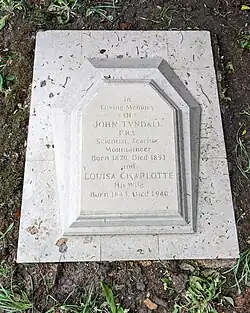 - ^ The value of Tyndall's estate at probate was £22,122: biography of John Tyndall by W. M. Brock in Oxford Dictionary of National Biography (2004). Some ways to assess today the magnitude of £22,122 wealth in 1893 are at MeasuringWorth.com Archived 26 February 2015 at the Wayback Machine.