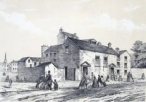 The Bristol chapel (built in 1739) was at first in the hands of trustees. A large debt was contracted, and Wesley's friends urged him to keep it under his own control, so the deed was cancelled and he became sole trustee.[60] Following this precedent, all Methodist chapels were committed in trust to him until by a "deed of declaration", all his interests in them were transferred to a body of preachers called the "Legal Hundred".[61]