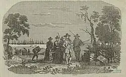 This decision brought on a storm of criticism, principally from the magistrates of Essex County, which was geographically closest to the ongoing dispute.[114] John Endecott was particularly critical, noting that Winthrop had given the French a chance to see the colonial defenses.[113] The 1644 election became a referendum on Winthrop's policy, and he was turned out of office.[115] The Acadian dispute was eventually resolved with d'Aulnay as the victor. In 1646, Winthrop was again in the governor's seat when d'Aulnay appeared in Boston and demanded reparations for damage done by the English volunteers. Winthrop placated the French governor with the gift of a sedan chair, originally given to him by an English privateer.[116]