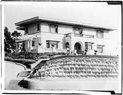 John Parkinson (12 December 1861 - 9 December 1935) was born in the small village of Scorton, in Lancashire, England in 1861. At the age of sixteen, he was apprenticed for six years to Jonas J. Bradshaw, an architect and engineer in nearby Bolton, where he learned craftsmanship and practical construction. He attended night school at Bolton's Mechanics Institute to study architectural drafting and engineering. Upon completion of his apprenticeship at age 21, he immigrated to North America as an adventure; he built fences in Winnipeg and learned stair building in Minneapolis. He returned to England only to discover that the English construction trades demanded more time and service for advancement. He decided that his then capabilities would be more appropriate to the less-structured opportunities in America. Parkinson went to California, settling in Napa where he again worked as a stair-builder, and he took on architectural commissions in his spare time, designing some of his first commercial projects including an annex to the original Bank of Napa building (1888, Demolished).[3]
