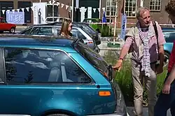 ![]() John de Vries explaining the rear wiper design of the Volvo 480 in 2014 | |