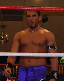 Gargano made his professional wrestling debut for CAPW in 2005.[10][1][6] In his first match, he competed in the AIW Gauntlet For The Gold Battle Royal on December 11, 2005, which was won by Michael Hutter.[10] Gargano calls his wrestling style "Lucharesu", a mix of British chain wrestling, lucha libre and puroresu and described his character at the time as "someone lacking self awareness and living in his own deluded little world".[9] On October 8, 2006, Gargano defeated Josh Prohibition, M-Dogg 20, and Zach Gowen in a four-way match to win his first Championship, the CAPW Junior Heavyweight Championship.[10] He would continue to make appearances for the company until August 5, 2007, teaming up with Prohibition in his CAPW farewell match, where they defeated Alex Shelley and Chris Sabin.[10]