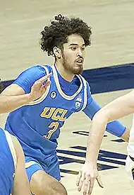 Juzang missed the first four games of the 2020–21 season with a stress reaction in his right foot.[18][19] In his first game, he scored 10 points off the bench in a win over San Diego.[20] He moved into the starting lineup in the following game against Marquette.[21] On January 14, 2021, Juzang scored a then-career-high 17 points, leading the Bruins in scoring in a 91–61 blowout win over Washington State.[22] On January 24, against Stanford, he scored 27 in a 73–72 loss in overtime,[23] the Bruins' first conference defeat of the season. The game included a stretch where Juzang scored 21 straight points for the team, making eight consecutive shots to end the first half and begin the second.[24] Against Washington, he scored a career-high 32 points in a 64–61 win.[25] He was the first Bruin to score at least half of his team's points in a game since Reggie Miller 35 years earlier.[26] The team's leading scorer, Juzang was a second-team All-Pac-12 selection.[27]