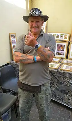 ![]() Johnny Kingdom at Barnstaple Pannier Market in August 2018 | |
