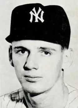 John Charles Kucks (July 27, 1932 – October 31, 2013)[1] was an American pitcher for the New York Yankees and Kansas City Athletics in Major League Baseball. In 1952, he was signed as an amateur free agent. Johnny Kucks won the final game of the 1956 World Series between the Yankees and Brooklyn Dodgers, shutting out the Dodgers, 9–0 at Ebbets Field—the last World Series game ever played in that ballpark.[2]