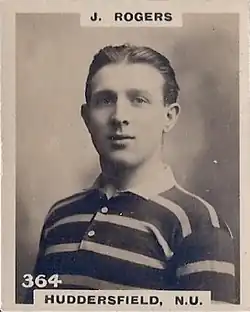 John Henry Rogers (1 October 1892[6] – 26 July 1958[7]) was a Welsh rugby union and professional rugby league footballer who played in the 1900s, 1910s and 1920s. He played club level rugby union (RU) for Bridgend RFC and Cardiff RFC,[1][2] initially as a wing and later as a scrum-half (alongside Clem Lewis) and representative level rugby league (RL) for Great Britain, Wales and Other Nationalities, and at club level for Huddersfield and Wakefield Trinity, as a wing, stand-off, or scrum-half.[3][8][4]