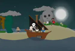 Plunderland also has unique scenery to be encountered by the player through gameplay. The islands on which the “Island people” reside on vary depending on the type of island people. There are three types of island people, paradise, eskimo and tribal. The tribal are more territorial than the paradise islanders, so they are more likely to fight back, and fight hard when being plundered.[21] Also, sharks, crabs and sea monsters will attacking your ship as you plunder. Joshua Scott-Slade described the gameplay as this: