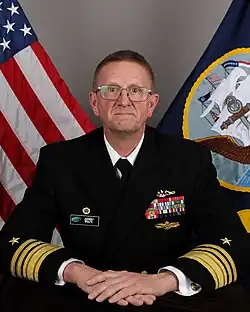 Johnny Ray Wolfe Jr.[2] (born 7 November 1965)[3] is a United States Navy vice admiral who currently serves as the Director for Strategic Systems Programs. Previously, he was the Program Executive Officer for Aegis Ballistic Missile Defense of Missile Defense Agency.[1][4][5] Wolfe attended the United States Merchant Marine Academy, graduating with a Bachelor of Science degree in marine systems engineering in 1988. He later earned a Master of Science degree in applied physics at the Naval Postgraduate School.[1]