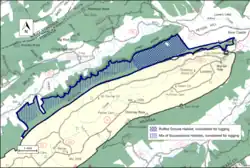 The forest service classifies areas under their management by a recreational opportunity setting that informs visitors of the diverse range of opportunities available in the forest.[7] Much of the ridgeline has been assigned "Old Growth with Disturbance", the eastern side has an area designated "Ruffed Grouse Habitat", the western side has a "Mix of Successional Habitats", there is a "Scenic Corridor" next to Rt 311 and a small tract near New Castle, which may be traded for other lands, is designated "Small Tract-Custodial".[2]