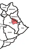 Johnson County was formed on February 24, 1843, by the Kentucky General Assembly from land given by Floyd, Lawrence, and Morgan counties.[4][5] At that time, its county seat of Paintsville had already been a chartered city for nine years. Homes had been built in Paintsville as early as the 1810s.[6]