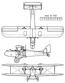 The two uncowled, air cooled, 32 hp (24 kW), horizontally opposed twin cylinder Bristol Cherub III engines were mounted in frames onto the inner interplane struts. Because of the stagger their propellers were behind the trailing edges of the upper wing but just above the lower one. Each frame was attached at only three points. making engine changes rapid. Engine related instruments were placed under each engine, easily visible from either cockpit. There were no fuel pumps as each engine was gravity fed from its own upper wing tank, each holding enough fuel for eight hours of flight.[1]