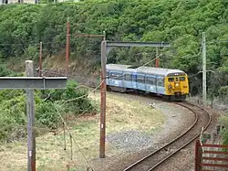 The line was terminated in Johnsonville, about 100 m beyond the end of the current line: the State Highway 1 motorway on-ramp follows the route of the old line. Ngaio and Khandallah stations already had crossing loops, and new stations at Awarua Street and Simla Crescent plus a third crossing loop (without passenger platforms) at Wadestown between No. 3 and No. 4 tunnels were added. The two new stations had been used by steam trains from 10 January 1938, although only some local trains stopped there (on request). Even with two additional stops the time to Johnsonville was now 19 minutes either way; previously with steam operation trains took 25 minutes up and 21 minutes down.[4][5]