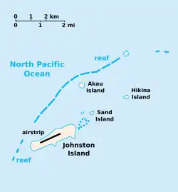 ![]() Map of the islands of Johnston Atoll, showing airstrip on Johnston Island | |||||||||||