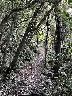 In its early days, the bush was predominantly composed of ribbonwood (Plagianthus regius) and māhoe (Melicytus ramiflorus).[5] By 1918, the Summit Road and Reserves Association noted it was "thickly covered with ngaios" (Myoporum laetum), and was unfenced and grazed by stock—ngaio is unpalatable to livestock and can persist in cattle pasture.[11] The Association judged that the reserve's undergrowth would recover once it was fenced.[9]