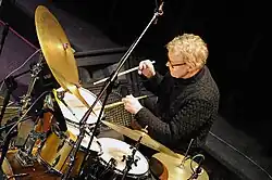 In the late 1960s, Christensen played alongside Jan Garbarek on several recordings by the composer George Russell. He also was a central participant in the jazz band Masqualero, with Arild Andersen, and they reappeared in 2003 for his 60th anniversary.[5] He appears on many recordings on the ECM label with such artists as Keith Jarrett, Jan Garbarek, Terje Rypdal, Bobo Stenson, Eberhard Weber, Ralph Towner, including the seminal 1975 Solstice, Barre Phillips, Arild Andersen, Enrico Rava, John Abercrombie, Michael Mantler, Miroslav Vitous, Rainer Brüninghaus, Charles Lloyd, Dino Saluzzi Jakob Bro, and Tomasz Stanko.[6] Christensen was a member of the Keith Jarrett "European Quartet" of the 1970s, along with Jan Garbarek and Palle Danielsson, which produced five jazz recordings on ECM Records.[2][3]
