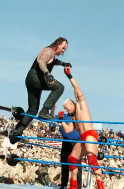 His first feud came against The Undertaker, and began after Heidenreich ran in during The Undertaker's WWE Championship match against John "Bradshaw" Layfield (JBL) at No Mercy.[22] The Undertaker beat Heidenreich at the next month's Survivor Series, but again Heidenreich cost him a WWE Championship match at December's Armageddon when he interfered in the main event fatal four-way match not once, but twice.[23][24] At WWE Tribute to the Troops on December 23, Heidenreich lost to The Undertaker via countout.[25] On the January 6, 2005, episode of SmackDown!, Heidenreich and Heyman lost to The Undertaker in a 2-on-1 handicap match, after Heyman was pinned. After the match, Heyman was placed in a casket by The Undertaker, writing him off television.[26]