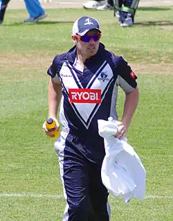 Holland continued to play at state level for Victoria over the following years, and in the winter of 2012 he was against selected to play for Australia A, this time in England. In October 2012, national selector John Inverarity called him Australia's second-best spin bowler, saying, "I think it's fair to say that we're of the view that the two best spinners we've got just at this moment are Nathan Lyon and Jon Holland."[2] Despite this, he still struggled to get an opportunity to bowl for Victoria, as the team prioritised its lineup of fast bowlers.[2] While playing a grade cricket game in October 2012, Holland re-injured his left shoulder and underwent another shoulder reconstruction, ruling him out of the rest of the 2012–13 season.[4][5]