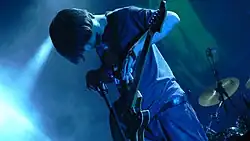 Radiohead's albums Kid A (2000) and Amnesiac (2001) marked a dramatic change in sound, incorporating influences from electronica, classical music, jazz and krautrock.[33] Greenwood employed a modular synthesiser to build the drum machine rhythm of "Idioteque",[34][35] and played ondes Martenot, an early electronic instrument similar to a theremin, on several tracks.[36]