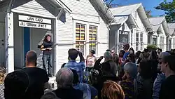 ![]() JooYoung Choi giving an artist talk at Project Row Houses in Houston in 2016 | |