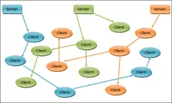 As opposed to streaming technology in which all clients get the feed from the server, P2P TV technology differs in the sense that the servers serve only a handful of clients; each of the clients in turn propagate the stream to more downstream clients and so on. This moves the distribution costs from the channel owner to the user.