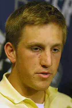 The following year, Schroeder was named to the under-20 team, the youngest on the team at 17, for the 2008 World Junior Championships in the Czech Republic.[41] He finished second in team scoring and tied for fourth in the tournament behind van Riemsdyk with one goal and seven assists for eight points in seven games.[42] Three months later, Schroeder made his second U18 tournament appearance. Named the player of the game in the American's match against Sweden, he recorded five points in seven games as the Americans earned a bronze medal.[5][43]