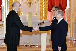- ^ "President Vladimir Putin received the letters of credentials of a number of countries' new ambassadors to Russia". The Kremlin, Moscow: Presidential Press and Information Office. 13 April 2007. Archived from the original on 17 April 2013. Retrieved 2008-10-07.