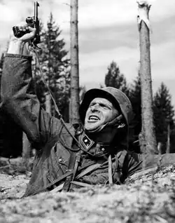 He returns to his unit as a company commander, newly married and in high spirits, unaware that a major Soviet offensive has begun in the meantime. Faced with a surrendering army and hearing that the otherwise calm Koskela also considers the situation hopeless, Kariluoto is completely crushed mentally; the collision with the reality of the front is so severe that Kariluoto goes from optimism to the exact opposite state, almost a mental disorder, in a few hours. Finally, he receives an order from the battalion commander, which even Koskela advises him not to obey, acts of his own free will and kills not only a number of his own men but also himself under enemy fire.[2][6]