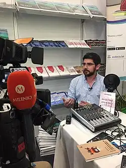 In 2024, he is included in the Encyclopedia of Literature in Mexico (ELEM), a digital encyclopedia on the literature of Mexico, edited by the Foundation for Mexican Letters,[50] supported by the Ministry of Culture and the National Institute of Fine Arts and Literature from Mexico.[51] This year, he also becomes the host of the radio show La Otra Historia: Fútbol, Literatura y Rock & Pop, broadcast from Guadalajara and created by Chilean poet Víctor Munita Fritis and cultural manager David Meneses.[52]