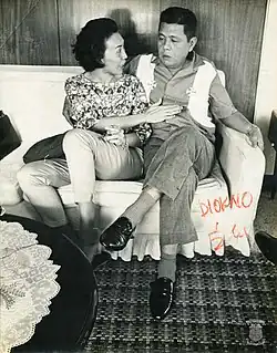 After Diokno enrolled at the University of Santo Tomas in 1940, his studies were interrupted by the outbreak of WWII in 1941 in his second year. When the war was over, he was granted a special dispensation by the Supreme Court of the Philippines and was allowed to take the Philippine Bar Examination despite having never completed his degree. He topped the 1944 bar exam[c][17] together with a 24 year old future ally named Jovito Salonga with a score of 95.3, the highest since the language of instruction switched to English.[18][11][19] As a reward, he took a solo vacation in the United States, where he would frequently call Carmen "Nena" Icasiano, a commerce student from Bulacan studying at Far Eastern University. They met in 1946 at a dinner party hosted by future Manila mayor Arsenio Lacson. Diokno was with Baby Quezon, who was the daughter of Manuel Quezon, while Carmen was with an American colonel, but both immediately spent the evening conversing with each other after being assigned to the same table.[20] Diokno started courting her, refusing to listen to his father’s wishes to marry Chief Justice José Abad Santos's daughter. Diokno quickly returned from his trip to propose to her after he found out on the telephone that she had tuberculosis and had missed seeing him.[20] He married Icasiano at Ermita Church in 1949.[d]