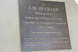 His final volume of contemporary French literature, with which he hoped to complete his work, was cancelled by his publisher, the firm of Didot, without a kill fee. Didot then gave his Littérature française contemporaine to the bibliographers Ch. Louandre and F. Bourquelot. Financially ruined and without an income, Quérard avenged himself by pointing out the errors of his successors. In spite of his claims and the value of the work he had done, Quérard was unable to secure a position in any of the public libraries. He died in Paris.[1]