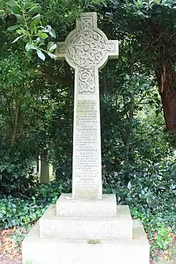 He died in Gullane on 28 September 1916[5] and is buried beneath a large Celtic cross amongst the trees in the section north of the vaults in Warriston Cemetery in north Edinburgh.[1]
