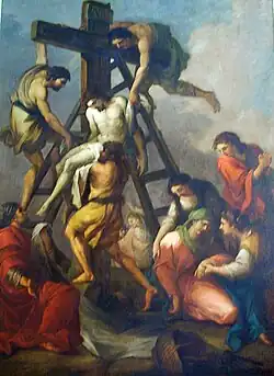 Two of his large-scale paintings — altarpieces The Deposition from the Cross (1781) and The Apparition of Our Lord to St Thomas (1784) are in Wolverhampton, and can be seen today at St John's church and at St Peter & St Paul's Roman Catholic church. During Barney's lifetime, his artistic achievements were respected and praised. In 1798, Stebbing Shaw, mentioning The Deposition from the Cross in his History of Staffordshire, called Barney a "native genius" of Wolverhampton.[2] In the collection of Wolverhampton Art Gallery, there is a pen and ink drawing, A Blind Musician, which gives some additional idea of quality and versatility of Barney's works.