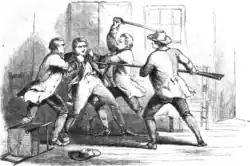 In 1782, on one of his covert visits to Saratoga County, Bettys was observed and tracked through the snow to the home of a well-known loyalist. He was surprised while eating, and overcome by four men—Jacob Fulmer, John Cory, James Cory, and Francis Perkins—and taken prisoner. He was given permission to smoke, but while getting his tobacco was observed to throw an object into the fire. This was retrieved and turned out to be a small lead box containing a paper with a message in cipher. Bettys offered 100 guineas to be allowed to burn the message, and also offered money for his release, but his offers were refused. He was set to Albany, where he was tried and executed that year.[2]