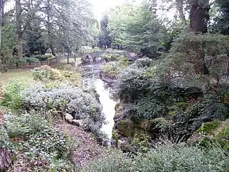 In 1897, Braithwaite had Highlands House built for him in New Barnet.[4] As an amateur astronomer, Braithwaite included a copper-domed observatory at the top of the house with a telescope on rails offering 360 degree views of the sky. The gardens, which are thought to have been planned by Braithwaite, had rockworks added around 1871 that were probably the work of James Pulham and Son of nearby Broxbourne. Braithwaite sold the house, or part of it, to George P. Howe in 1930 who converted it into eight flats. The grounds were converted to a park, Highlands Gardens, which opened in 1931 and still exists. After it became dilapidated the house was demolished in around 1972 and replaced by flats.[5]