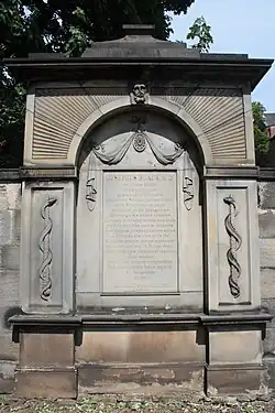 Black never married. He died peacefully at his home 12 Nicolson Street[24] in south Edinburgh in 1799 at the age of 71 and is buried in Greyfriars Kirkyard. The large monument lies in the sealed section to the south-west known as the Covenanter's Prison.