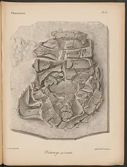 Palaeontologist Richard Owen arranged for a lithograph by Dinkel of an Altispinax specimen.