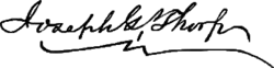 Thorp was born on April 28, 1812, in Butternuts, New York.[1] Later, he moved to Eau Claire, Wisconsin. He died in Cambridge, Massachusetts, in 1895.[2] The daughter of Joseph G. and Susan Amelia Thorp, Sara Chapman Bull, was married to the world-famous violinist Ole Bull in a lavish wedding in his Madison mansion.[2] His son, Joseph G. Thorp Jr., was married to a daughter of Henry Wadsworth Longfellow.[2][3] Thorp, Wisconsin was named after him.[4][5]