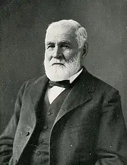 LaBarge wore a full beard most of his adult life and in his later years was said to bear a striking resemblance to General Ulysses S. Grant.[11] LaBarge married Pelagie Guerette on August 17, 1842, whom he knew since his childhood.[12] Pelagie was also born in St. Louis, on January 10, 1825. One of the first water-driven mills in St. Louis was built and operated by her father, a millwright and architect.[13] They had seven children. LaBarge was a lifelong Catholic in religion, and in politics, a lifelong Democrat.[14]