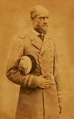 His postings included the USS Potomac,[13] USS Columbia,[14][15] USS Vincennes,[11][16] USS Cyane,[17] the Norfolk Naval Shipyard,[18] and USS Susquehanna. In 1861, at the beginning of the American Civil War, he held the position of first lieutenant on the USS Susquehanna in the Mediterranean Sea.[2] Upon returning to the United States on June 6, he resigned his commission the same day.[19][20]